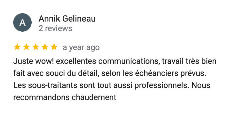 Planification précise et minutieuse – Échéancier clair, suivi de chantier rigoureux.